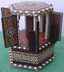 A popular theme was to make them in the form of televisions which, at that time, were still a novelty themselves !! When the musical box was activated, by opening a drawer or lid, whatever is in the “screen” area will start moving. Many use a ballerina or a couple who actually move. The use of mirrors help to create the illusion of a crowded ballroom.